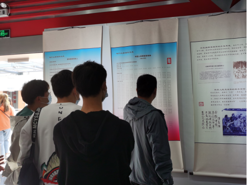 在纪念馆内,全体员工和老师认真聆听完讲解员的解说后,老师们结合本次徽州研学的教学任务,现场开展“考察展馆设计,感受红色文化”为主题的课程思政教学活动。跟同学们一起认真分析讨论各个展厅陈设设计以及历史图片、实物、微电影等,重历新四军东进抗日路线,再现新四军将士在岩寺革命抗战的烽火岁月。