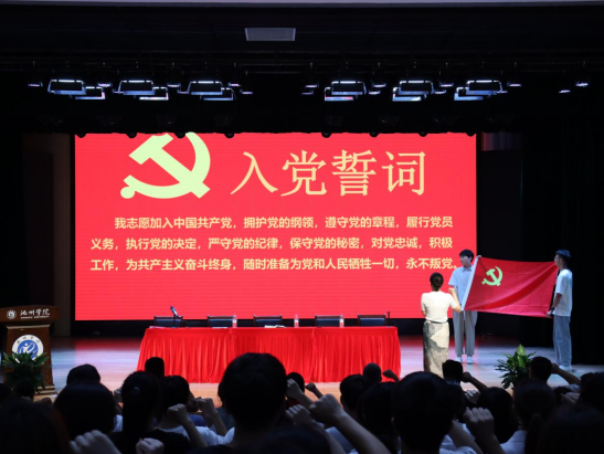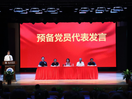 大会在雄壮的中华人民共和国国歌声中拉开帷幕。新接收的一批预备党员宣誓、老党员重温入党誓词。