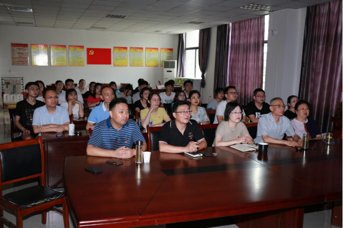 2021年7月1日早上8点,威廉体育williamhill在艺术楼三楼集中观看建党一百周年大会,科级以上干部、各党支部、各教研室代表40余人参与观看。