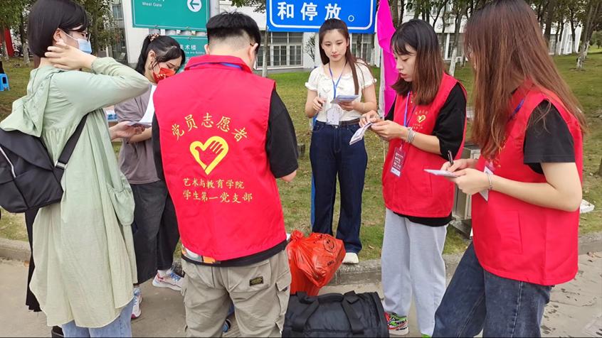 党员先锋队员们佩戴党员党徽,以良好的精神风貌提前到达迎新现场,为迎新做好准备。迎新过程中,党员们各司其职,以实际行动践行着“全心全意为人民服务”的宗旨。主动接过沉甸甸的行李箱,开始了贴标签、行李分流、引导新生办理报到手续等工作,并耐心的答疑解惑,为新生入学开启了温暖的大门。党员们始终秉持着“以孔子为师,以行知为友”的校训精神,热情迎接新生,以积极的态度对待迎新工作,发挥了党员的先进性。