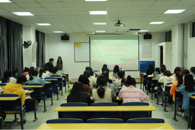 为进一步增强2021级新生对党的路线、政策、方针认知,引导2021级新生积极向党组织靠拢,端正入党态度,了解党的基本知识及入党流程,威廉体育williamhill第五党支部10月12日晚在多媒体教室面向学前教育新生开展入党知识培训会。此次培训会由员工第五党支部书记王俊华主持、主讲。
