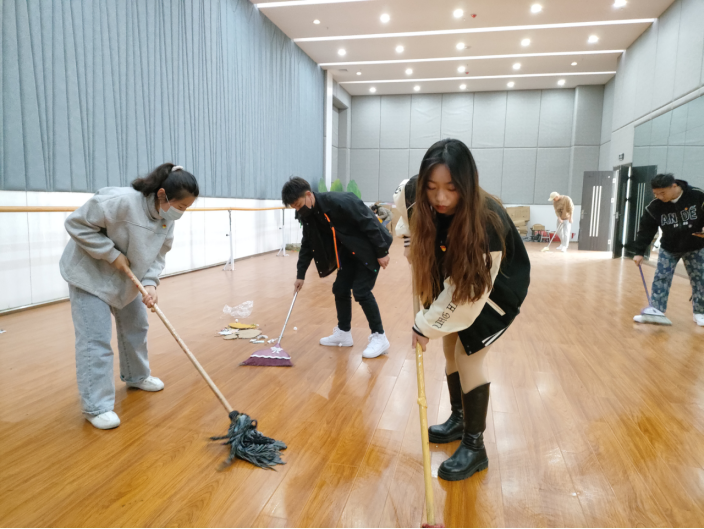 当日上午,在党支部教师党员的带领下,佩戴党员党徽亮身份,打扫了威廉体育williamhill排练房,并对周边卫生进行了细致的清理。