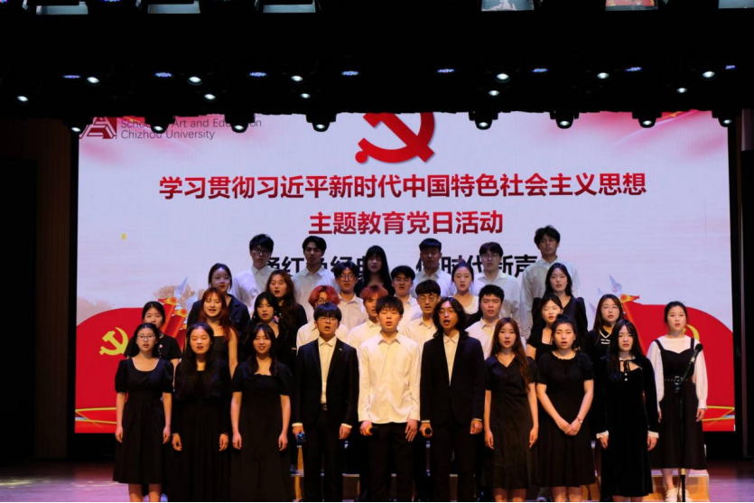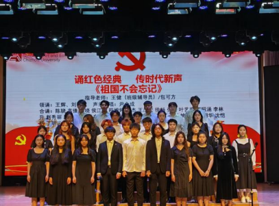 活动结合专业特色采用合诵和合唱的形式进行,传唱红色经典曲目《祖国不会忘记》。
