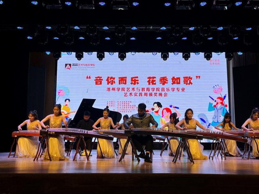 活动节目包括声乐、器乐、舞蹈、钢琴、弹唱等类型,充分展现了音乐学专业的教学实践成果。其中古筝合奏《党的光辉照我心》改编自经典歌曲《唱支山歌给党听》,作品通过现代创作技法与审美重新编排,呈现出既具共情共鸣又耳目一新的视听感受。乐曲以国乐为载体,在熟悉的旋律中重温中国共产党走过的伟大历程。