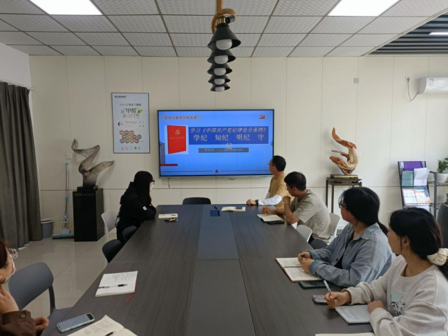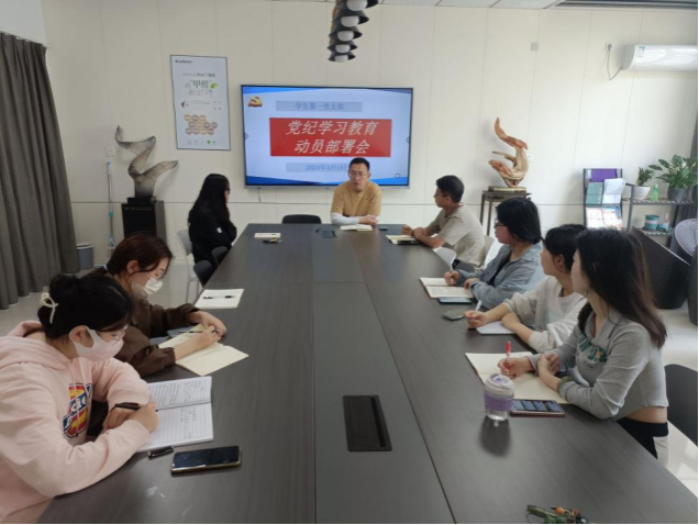 4月18日下午,员工第一党支部在美术楼三楼教师休息室召开党纪学习教育动员部署会议,会议由支部书记李俊明主持,党支部全体党员参加。