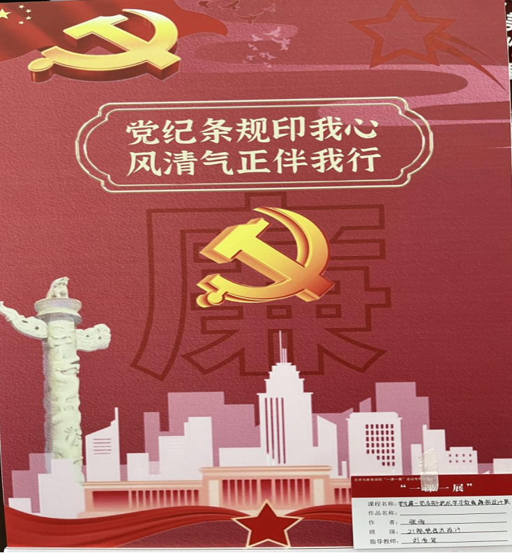 活动过程中,党员员工们深入研读《中国共产党纪律处分条例》等党规党纪,并结合自己的理解和感悟,发挥专业优势,用艺术海报的形式展现出来。本次党纪学习海报设计展由党支部书记刘书宜老师指导,员工积极创作了三十余幅作品,党支部遴选出13幅作品,于6月28日至6月30日在美术楼1楼大厅展出。