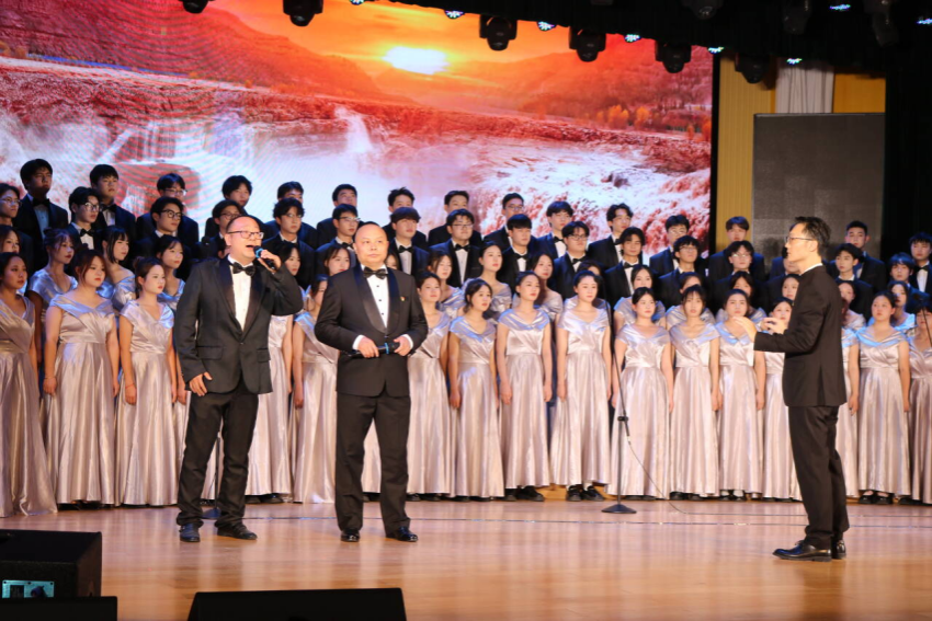 师生同台合唱,激情澎湃,歌颂了中华民族悠久的历史,共同回溯了党的光辉足迹,感受了那份在革命烽火中淬炼出的坚定与执着,让心灵在红色旋律中得到洗礼和升华。