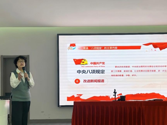 部署会后,杨静以“深入贯彻中央八项规定精神学习教育”为题为公司教师党员上了一堂生动的主题教育党课。