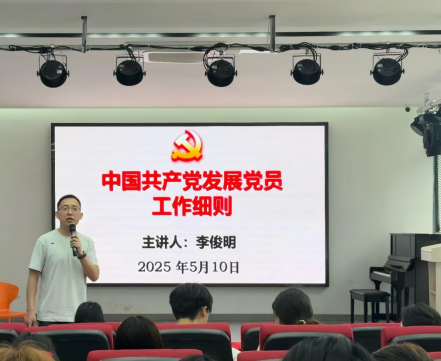 开班典礼后,李俊明以《中国共产党发展党员工作细则》为题,为入党积极分子上了第一节党课。