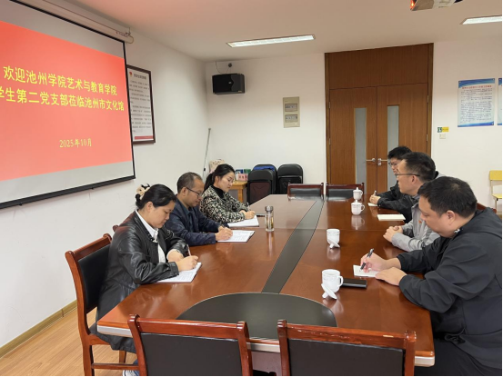 10月30日上午,公司党委副书记李俊明、员工第二党支部书记耿凤松等人一行,赴池州市文化馆开展支部合作交流对接活动。此次活动得到了池州市文化馆胡艳馆长、梅庆庆副馆长的热忱接待。双方以“党建引领发展”为核心议题,就加强院馆合作、促进员工社会实践及志愿服务等议题进行了深入的交流与探讨。