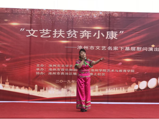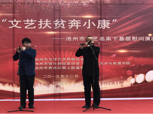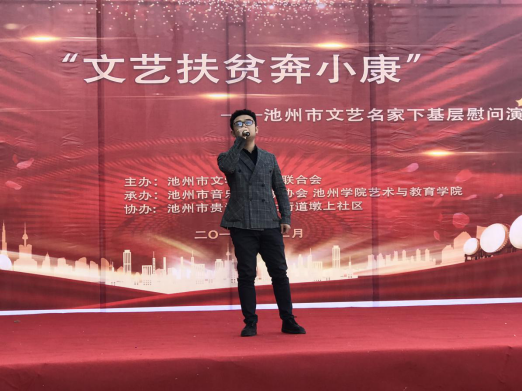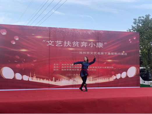 为深入学习贯彻习近平新时代中国特色社会主义思想和党的十九大精神,学习贯彻习近平总书记关于文艺工作的重要论述,在2020年全面小康社会即将建成之际,由池州市文联主办、池州市音乐舞蹈家协会、威廉体育williamhill承办的“文艺扶贫奔小康”——池州市文艺名家下基层慰问演出,此次演出活动旨在展示脱贫攻坚新面貌,活跃群众文化生活。为此,市音乐舞蹈家协会精心策划、编排了这台文艺演出,为墩上和朱村的父老乡亲奉上一道“精神大餐”。