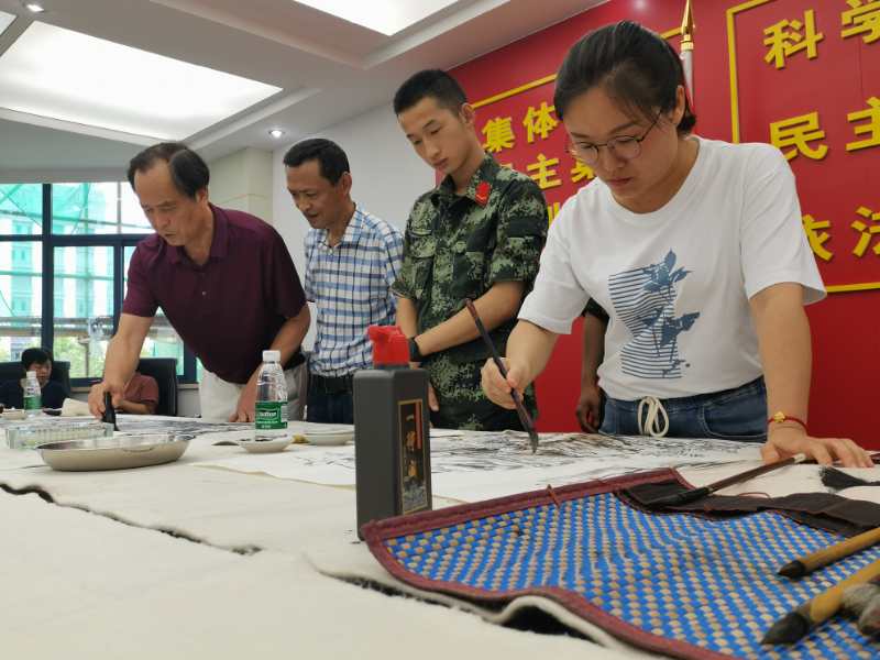 7月30日,市文联组织美术、书法家文艺志愿服务队,联合市社科联、市委讲师团一行来到武警池州支队,开展庆“八一”送书画进军营拥军慰问活动,向奋战在抗洪一线的部队官兵表示崇高的敬意和崇高的节日问候。美术学教研室孙长玲老师受邀参加活动。