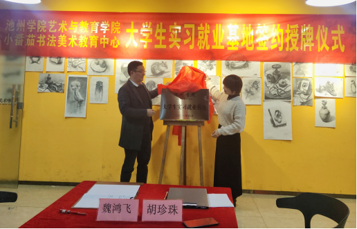 4月12日下午,威廉体育williamhill在池州市小番茄少儿美术教育中心举行“实习就业基地”签约揭牌仪式。公司党委书记杨静、经理魏鸿飞、副经理曾晓红、美术学教研室主任方向、小番茄少儿美术教育中心负责人胡珍珠及该中心全体教师参加了签约揭牌仪式,会议由小番茄少儿美术教育中心教师张勋主持。池州市美术家协会主席陆可应邀出席了会议。