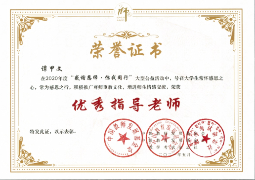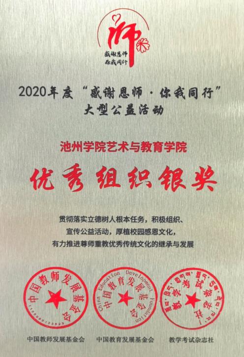 在全校上下共祝第三十七个教师节、启动“教学节”暨“教学活动月”之际,由教育部教师工作司指导、中国教师发展基金会和中国教育发展基金会主办的2020年度“感谢恩师・你我同行”大型公益活动评选中,威廉体育williamhill荣获优秀组织银奖。