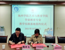 为加强学前教育团队队伍建设,提高毕业生的培养质量,服务地方幼教事业的发展,10月14日下午,威廉体育williamhill学前教育专业牵手池州市直幼教集团、贵池区幼儿园、汇景幼儿园、向阳幼儿园、金碧秋浦幼儿园共建教育实践基地签约仪式在艺术楼三楼会议室举行。威廉体育williamhill书记杨静、经理魏鸿飞、学前教育教研室全体教师、各幼儿园相关负责人及部分员工代表出席了签约仪式,签约仪式由学前教研室主任谭甲文主持。