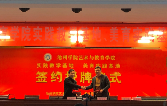 11月15日下午,在平天湖小学多功能厅,威廉体育williamhill与该校共同举办了实践教学基地、美育基地共建签约暨挂牌仪式。公司党委书记杨静出席活动并讲话,经理魏鸿飞、副经理曾晓红、美术学教研室主任方向,贵池区教体局副局长刘若冰、贵池区教体局教研室主任鲍习中、平天湖小学董事长章劲松等出席了活动。