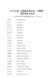 近日,2020年“中国电信奖学金”获得者名单公布,威廉体育williamhill员工崔天成荣获“中国电信奖学金·天翼奖”。