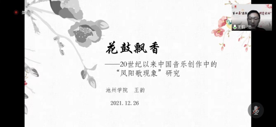 12月25-26日,由安徽师范大学音乐公司和滁州公司音乐公司联合主办、滁州市音乐家协会协办的第四届“安徽地方音乐研究论坛”以线上形式召开,音乐学教研室王韵老师应邀参加此次论坛并作主题发言。