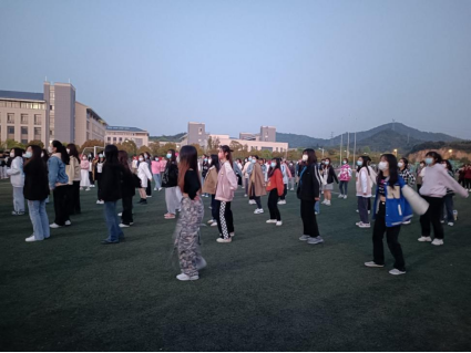 活动中严格遵循防疫规定,大家都佩戴好口罩,积极踊跃地参与其中,随着《日不落》、《最炫民族风》等热门歌曲尽情舞蹈。在领舞的带领下,同学们的舞蹈动作也逐渐熟练。他们不断做着抬腿、转圈等一系列动作,尽情展示着他们的青春活力,为在校期间的生活增添了些许惬意。