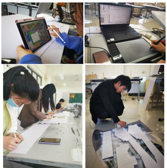 同学们在线下课堂实践中有条不紊,有的在精益求精的优化建筑方案;有的在全神贯注的勾勒线条;有的在一丝不苟的喷绘建筑构件;有的则利用工具有板有眼的裁切模型材料,同学们互帮互助,课堂实践氛围浓厚,充满了创作激情,激发了员工的劳动热情。