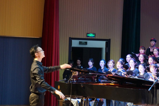 本次合唱指挥结课采取汇报演出的形式是践行音乐学专业“以生为本、以用为先”“既要站好讲台、也要站稳舞台”的育人理念,秉持“凸显师范性、突出实践性、强化创新性”的专业发展思路,提升师范生各项专业技能和舞台实践能力,从而达到提高人才培养质量的目的。