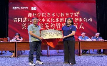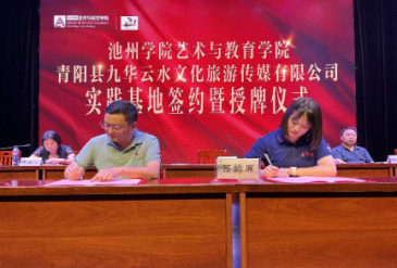 在签约暨授牌仪式上,九华文旅公司董事长高莹对公司及青阳腔保护传承相关工作作了简要汇报。经理魏鸿飞介绍了公司的历史、团队及科研相关情况,强调此次校企合作要充分发挥高校服务社会、文化传承、科学研究及人才培养职能,要以成果导向进一步拓展校企合作领域、发挥校企合作的平台优势。随后双方举行了实践基地签约和授牌仪式。