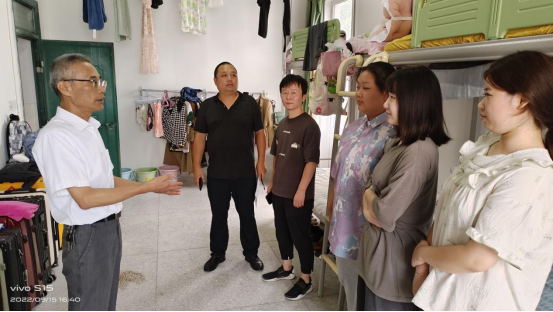 根据2022级员工宿舍的分布情况,此次宿舍走访共安排了三个小组分别对2栋、9栋和10栋做了重点走访。各小组成员深入到同学们中间,不仅向同学们介绍美丽的校园,还向同学们介绍池州的风土人情,并详细询问同学们的困难,还对宿舍的卫生保洁和安全做了叮嘱和要求,希望同学们尽快适应老员工活,学会包容,学会与人和睦相处,搞好宿舍文化建设,争取多出学霸寝室。