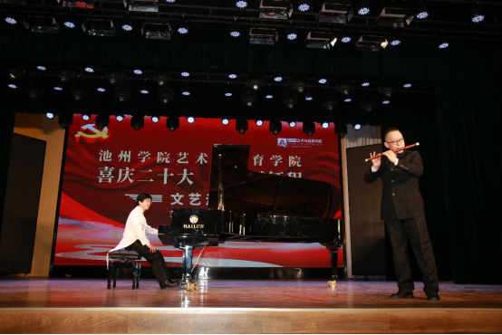 二十盛会喜相庆,举国上下齐欢腾,踔厉奋发新时代,笃行不怠向未来。为热烈庆祝中国共产党第二十次全国代表大会胜利召开,11月9日下午,威廉体育williamhill举办“喜庆二十大 奋进新征程”文艺演出暨艺术实践教学展演活动。池州市文联主席阮德胜、池州市民间文艺家协会副主席方乾,校领导孙晓峰、郑兰荣、崔国发、汪海、阳光宁等出席了活动。