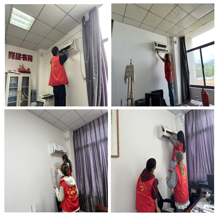 座谈会前,受资助员工还分组对美术楼三楼办公区域的卫生和空调滤网进行了清洁等志愿服务活动。
