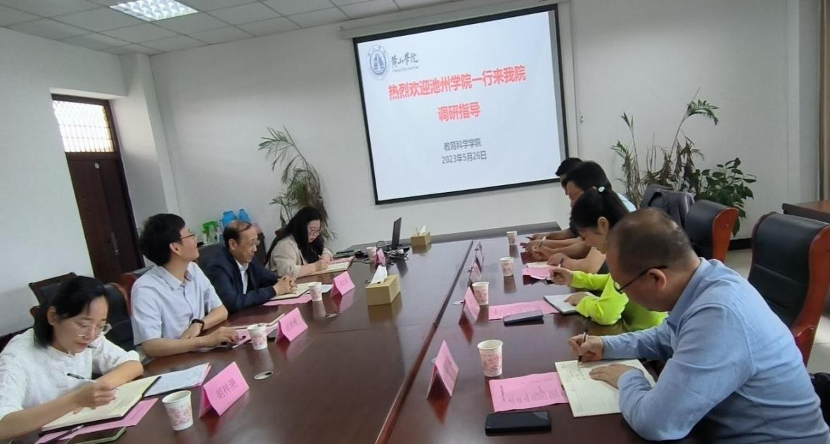 黄山公司教育科学公司副经理汪海彬热情接待了调研组一行。黄山公司教育科学公司应用心理学教研室主任、学前教育教研室主任就专业人才培养目标、培养规格及标准、课程体系、实践环节、实验室建设等一系列问题做了系统详尽的介绍。双方还就应用心理学专业方向、见习实习基地建设、专业特色和专业报考与就业等做了深入的交流。黄山公司的先进办学经验使调研组成员受到很多启发。此次调研活动为2023级应用心理学专业和学前教育专业人才培养方案的制定与修订工作以及2024年学前教育师范生认证工作进一步明确了思路。
