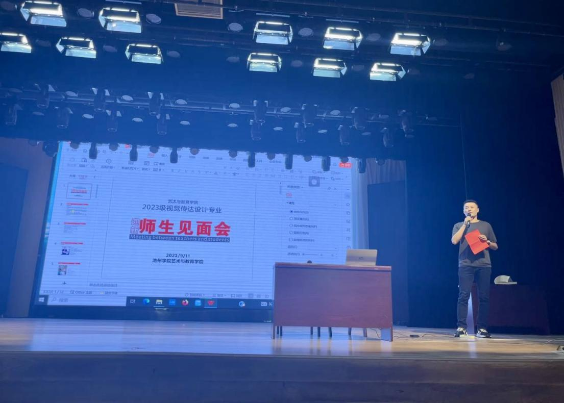 上午9:30,视觉传达专业2023级新生见面会准时在音乐厅举行,视觉传达设计专业教研室全体教师及新生参会,见面会由教研室主任冯鹤主持。冯鹤对新同学的加入表示欢迎,对视传专业的教学、科研、就业等方面做出了生动的介绍。