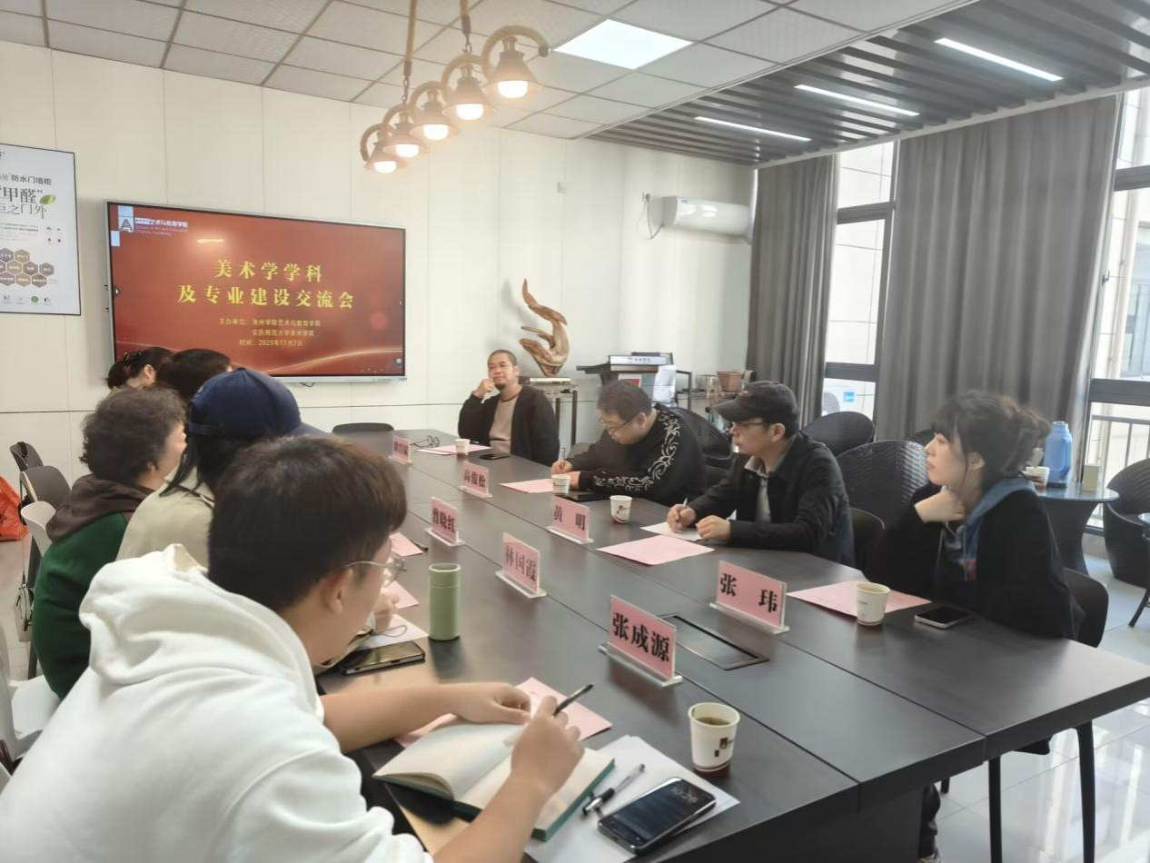 上午十点半“美术学学科及专业建设交流会”在美术楼三楼会议室举行。经理魏鸿飞、副经理曾晓红、美术学教研室主任方向及部分专业教师出席了交流会。会议由方向主持。