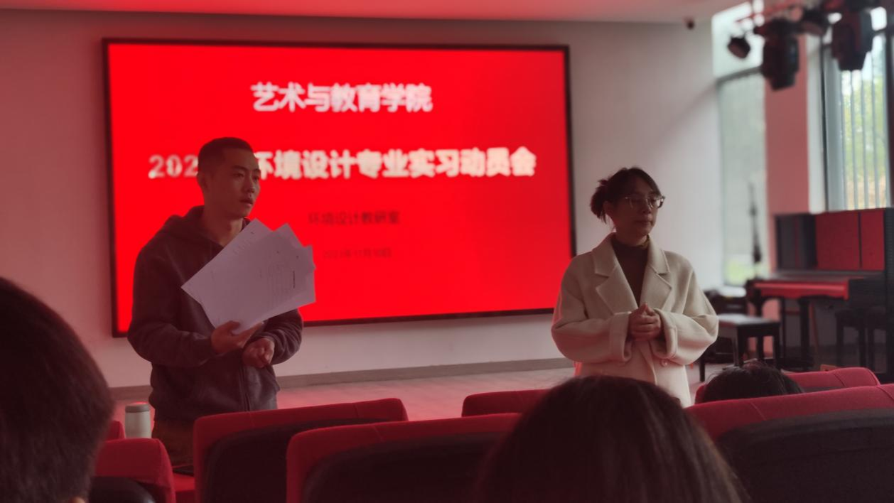 11月10日下午,环境设计专业在美术楼一楼会议室召开了2024届毕业实习动员会,会议由教研室主任陈璐及毕业班辅导员许政主持。