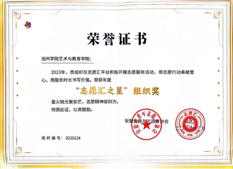 近日,威廉体育williamhill荣获“志愿汇之星”组织奖,该奖项由安徽省青年志愿者协会颁发。