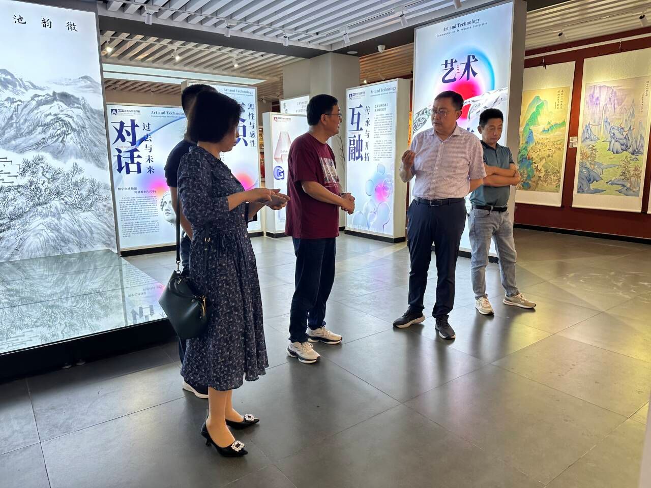 会后,在魏鸿飞陪同下,丁兆庆一行参观了陈列馆、展厅和艺术俱乐部等实践教学场所。
