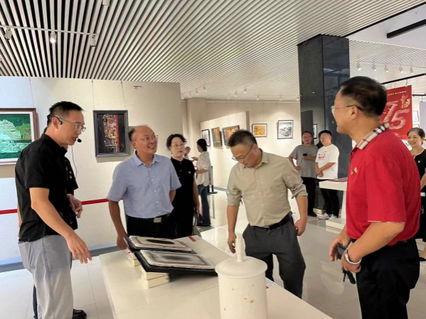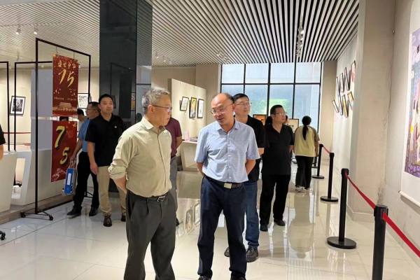 在音乐党课开始前,校领导共同参观了威廉体育williamhill举办的“丹青绘就中国梦、强国奋进新征程——庆祝中华人民共和国成立75周年师生美术作品展”。展示作品以细腻的笔触和生动的艺术形式,展现了75年来党和国家事业的发展成就以及新时代的全新局面,包含着师生对祖国的深情厚谊,对美好生活的无限向往,以及对祖国未来的美好祝福。