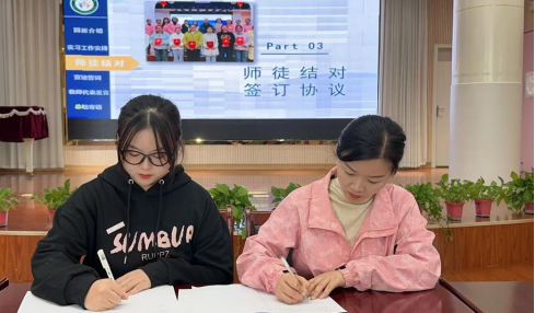 在启蒙树幼儿园,一场师徒结对仪式正在进行。指导老师和实习生共同签订协议,相信他们签订的不仅仅是一份承诺,更是一份沉甸甸的责任。