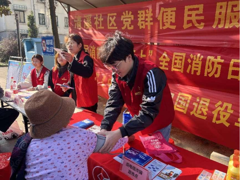 各支部党员志愿者们走进清溪社区凤凰岭小区,在便民大集市上向社区居民居民宣传医疗保险政策、消防安全、反电诈等知识,有的志愿者热心参与爱心义诊、理发、磨刀的引导,有的志愿者开展了社区环境治理等服务。师生党员志愿者们热情主动、耐心细致、认真踏实的表现,得到了社区居民的一致好评。