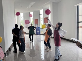 本次活动以趣味竞技为核心,设置“拍气球穿围裙大赛”、“蒙眼原地踏步走”、“幸运乒乓球”三个比赛项目,吸引公司教职工积极参与,现场加油声、欢笑声交织,气氛热烈欢快。
