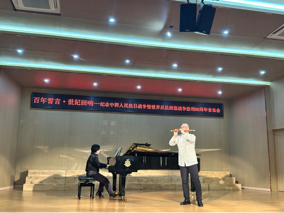 本次公司选派的节目聚焦传统器乐精髓:由高莹莹担任竹笛独奏,赵祯担任钢琴伴奏的《破晓》:以清亮激昂的笛声,艺术化地描绘了抗战黎明前的黑暗与冲破桎梏、迎接胜利曙光的坚定信念,音乐充满张力与希望。