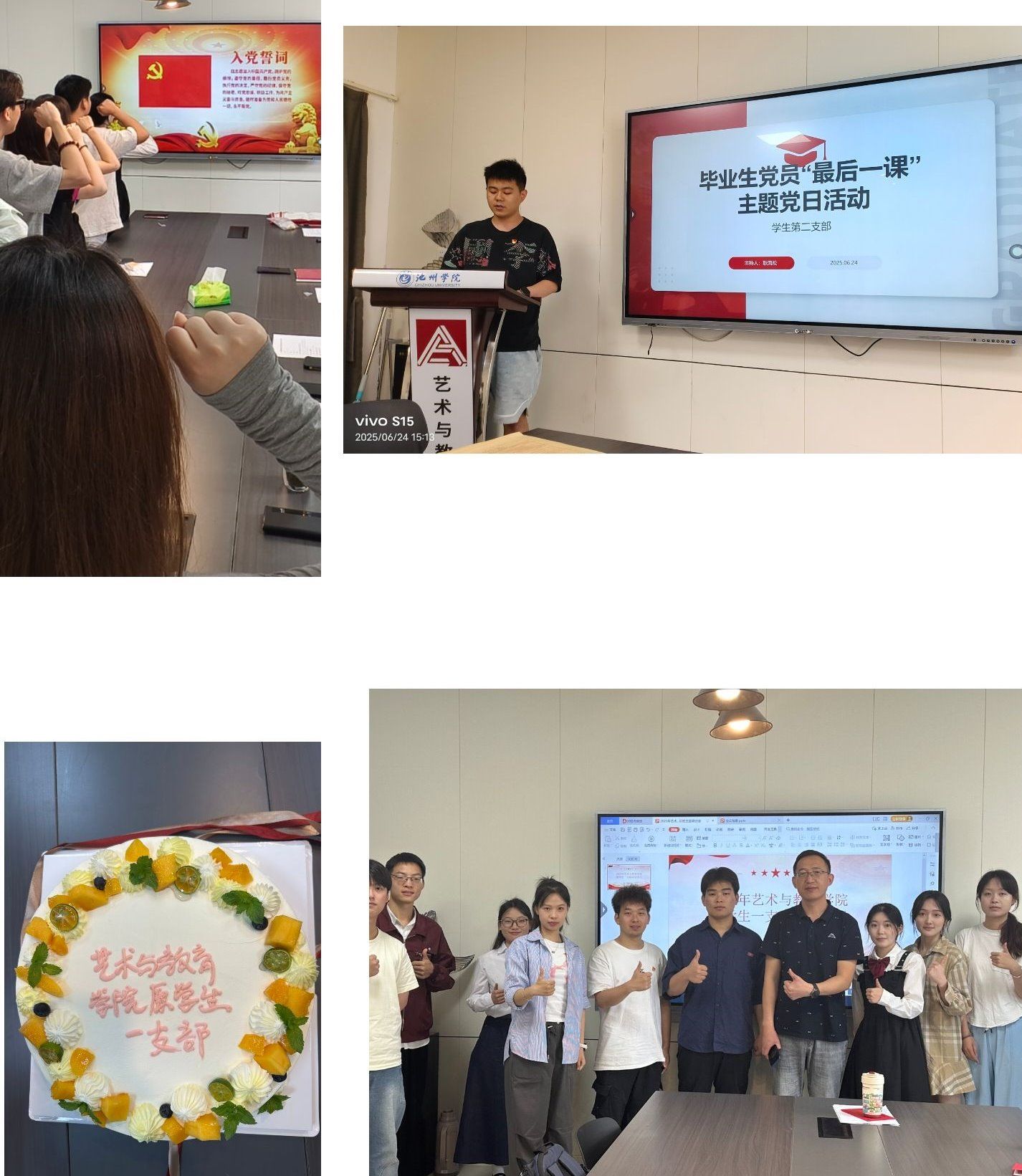 党党支部活动,强化党性修养,激励担当作为:员工党支部开展了最后一趟党课、赠送纪念品、党员政治生日等活动。活动中,党员们重温入党誓词,回顾入党初心,分享了自己在党组织培养下的成长历程和感悟。通过此次活动,进一步增强了毕业生党员的党性修养和组织归属感,激励他们在今后的工作和生活中继续发挥党员先锋模范作用,为党和人民的事业不懈奋斗。同时,公司还为毕业生党员颁发了优秀党员证书,表彰他们在大学期间为党组织做出的贡献,鼓励他们将这份荣誉转化为前进的动力,在新的工作岗位上再创佳绩。