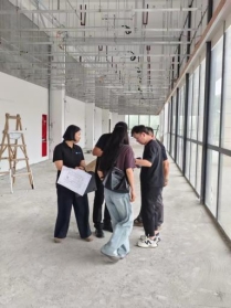 在炎黄泰芯池州分部负责人的引导下,师生团队深入考察公司待装修场地,围绕场地设计项目展开专业洽谈。团队立足环境设计专业优势,结合场地实际条件,从空间结构优化、采光资源高效利用、人流线路科学规划等核心维度,提出兼具实用性与创新性的初步设计构想,双方还就展厅设计理念、功能定位等关键议题深入研讨,炎黄泰芯池州分部负责人对团队提出的设计方案高度认可,认为方案充分契合企业需求,展现出扎实的专业水准。