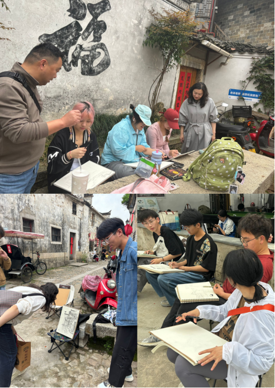 本次写生采风深入泾县查济、黟县宏村和屏山三个古民居建筑群,同学们对徽派古村落建筑结构、建筑特点、徽州三雕、徽州壁画等内容进行了现场调研与绘制,了解了徽派建筑独具特色的风格基调、高超建筑技艺和不朽的艺术价值,切身感受了博大精深、内涵丰富的徽文化,进而提升了同学们的审美素养和设计能力。