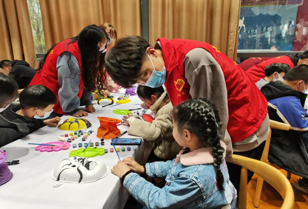 3月27日下午,威廉体育williamhill青年志愿者协会分会原美公益部在富景垚书店开展了青阳腔脸谱面具绘制教学活动。