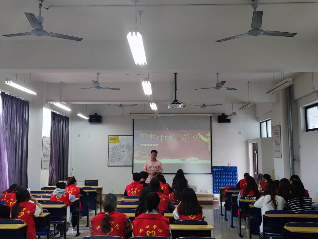 5月20日上午,为庆祝建党100周年,威廉体育williamhill青年志愿者协会分会联合发展对象培训班学1支部在艺术楼多媒体教室开展了“美术中的党史”观影宣讲活动。