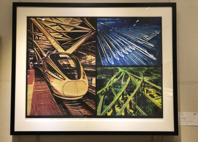 崔天辰的参展作品《筑梦系列:高速铁路》运用现代版画技法,通过“进站、待发、驰骋”这三个特定画面,及光影色调、线描色块的视觉冲击,表现中国高铁建设工程的宏大、建造运营技术的先进、覆盖服务范围的广阔,讴歌了新中国在党的领导之下取得了举世瞩目的丰功伟绩。