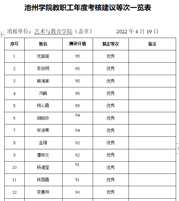2021年度考核优秀等次人员排序公示