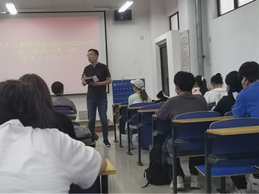 为了使本学期“ 一课一展”工作得到更加规范、高效的开展,5月5日中午,“一课一展”策展工作组在美术楼301多媒体教室召开了本学期第一次工作会议。行政办公室主任李俊明及各班级负责人参加了会议,会议由策展组组长解晨晨主持。