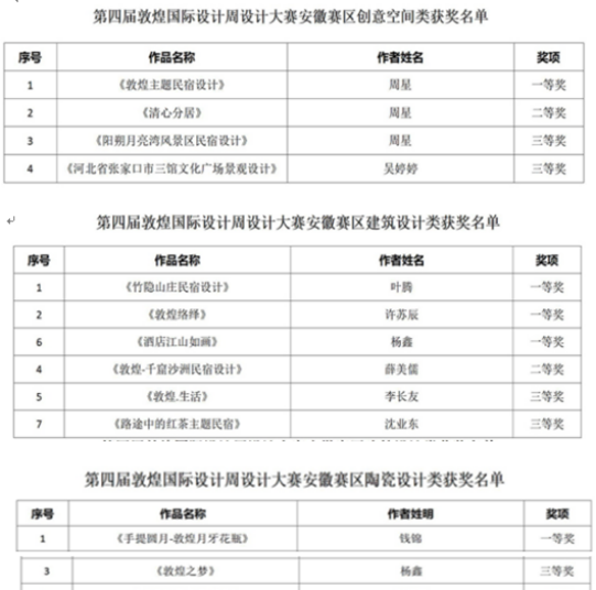 近日,第四届“敦煌国际设计周”安徽赛区评审结果揭晓,威廉体育williamhill环境设计专业员工分别在空间创意类、建筑设计类、陶瓷设计类赛道中勇获佳绩,共荣获一等奖5项、二等奖2项、三等奖5项。