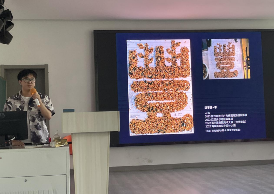 陈杰围绕参赛作品和个人经历与同学们展开了分享。他说到:参加竞赛不应拘泥于校内,可以放宽视野,积极参加校外竞赛;同时也要不局限于本专业,看一些多种形式的展览,以此获取灵感;在创作时主题和想法都十分重要,要多积累作品,达到从“量变到质变”的升华。